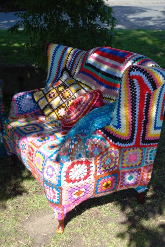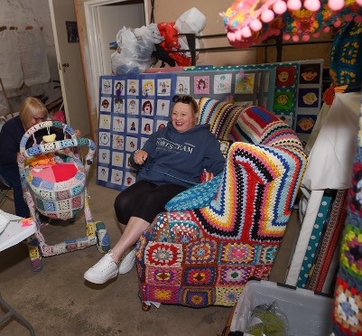 This display was created by members of Cosby Crafters community group for Cosby Yarn Bomb 2023, using newly crocheted & repurposed granny squares & old gifted blankets. Working on our Yarn Bombs nurtures togetherness, pride and a shared sense of belonging, we have a lot of fun too!